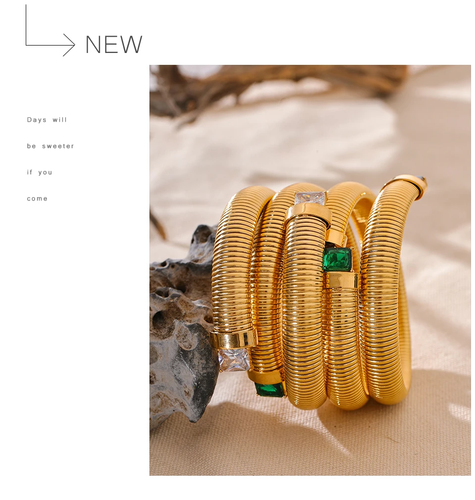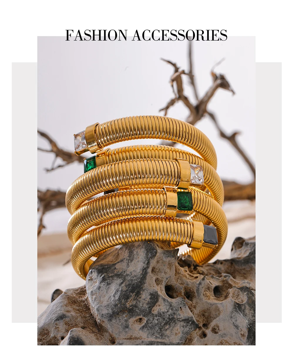 Zirconia Stainless Steel Elastic Bracelet Bangle